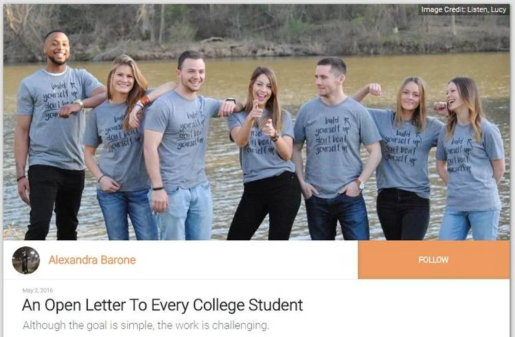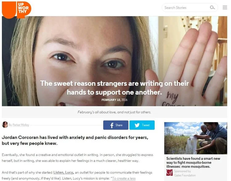 WHEN I STARTED LISTEN, LUCY, I JUST WANTED TO CREATE AN OUTLET WHERE PEOPLE COULD EXPRESS THEMSELVES FREELY AND CREATIVELY. I HAD NO IDEA THE LIFE IT WOULD TAKEN ON AND HOW MANY INCREDIBLE AND SPECIAL OPPORTUNITIES IT WOULD ALLOW ME TO EXPERIENCE. THIS JOURNEY HAS BEEN A WILD ONE-- BUT ONE THAT IS SO REWARDING AND SO BEAUTIFUL. WE ARE ALL DEALING WITH DIFFERENT ISSUES AND I WANT TO CREATE A COMMUNITY WHERE PEOPLE CAN TELL THEIR STORIES AND FEEL FREE. MY MISSION HAS ALWAYS BEEN SIMPLE. I WANT TO CREATE A LESS JUDGMENTAL, MORE ACCEPTING WORLD. I HOPE YOU JOIN ME.